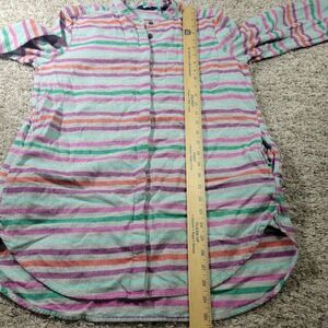 Lands End Flannel Shirt Womens Medium Gray Striped Colorful Tunic Button Up. in good condition