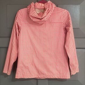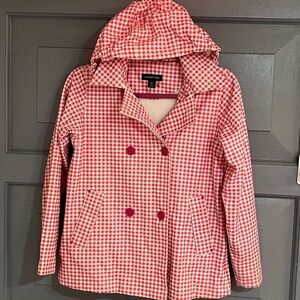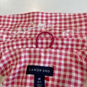 Lands End Kids Girls Gingham Red & White Hooded Rain Coat Sz M Preowned