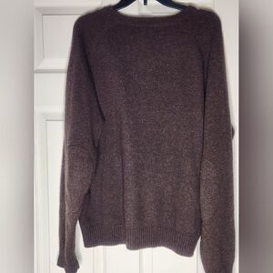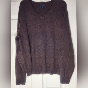 Lands'End L 42/44 Brown Lslv Knitted Merino Wool Blend V-neck Men's Sweater