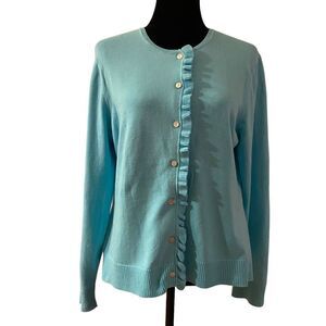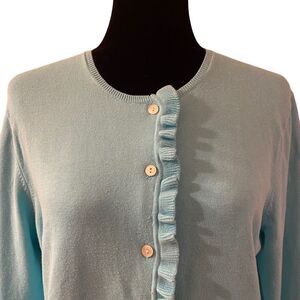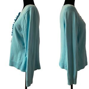 Lands’ End Lightweight Aqua Long Sleeve Cardigan with Front Ruffle Size Medium