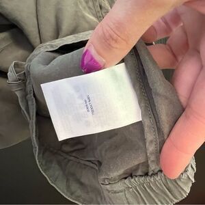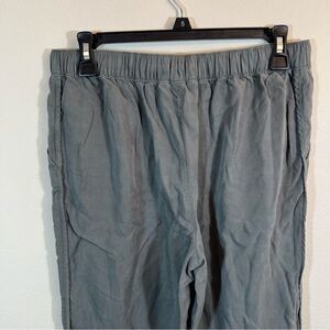 Lands’ End women’s 100% lyocell mid-rise pants. Has drawstring. In person they’re a bit greener than they appear in photos.