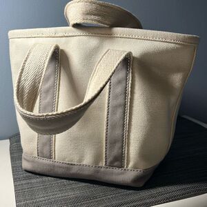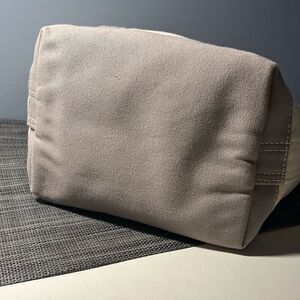 This is very close to being new with the exception of a few spots on the interior (bottom). Zipper and key clip fully functional. Canvas boat and tote. Measurements in photos.