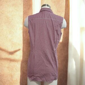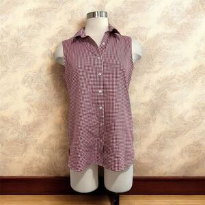 Lands and red and white checkered, button-down, sleeveless collared shirt blouse top no iron sumpia