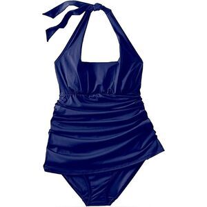 Land's End Plus Size Square Neck Halter One Piece Swimsuit Dress Navy Size 1X