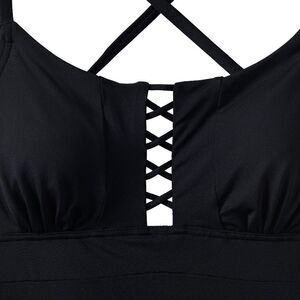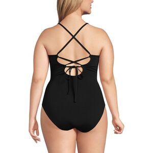 Land's End Plus Size lace up one piece swimsuit bathing suit, tie back black 24W