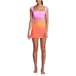Land's End Smoothing Square Neck Ruched 1 piece Swimsuit Swim Dress Orange Sunset Ombré Various