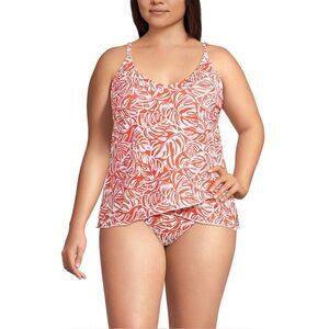 Land’s End Plus Standard tulip hem adjust tankini Orange mini tropic leaves Var