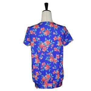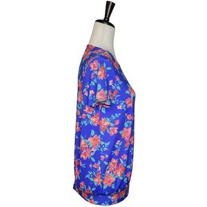Lands' End Royal Blue Floral Tie Detail UPF Rash Gaurd Swim Top Size XS