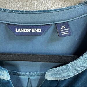Lands’ End Velvet Button Front Shirt Teal Evening Career Plus Size 2X