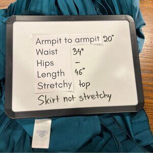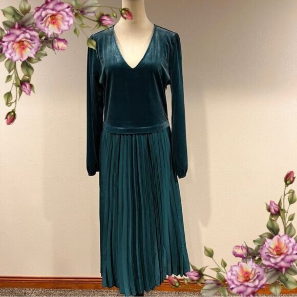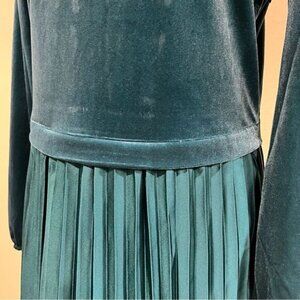 Lands' End Velvet and Satin Midi Dress in evening teal color with plated skirt