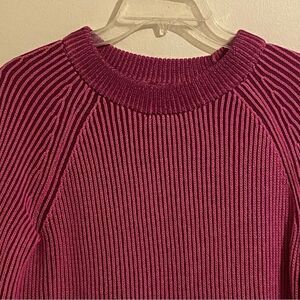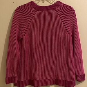 Lands End Womens Size XS 2-4 Dark Pink Cotton Knit Crewneck Sweater