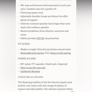 Land's End chlorine resist square neck tankini top adjust thin strap black Var