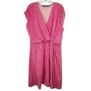 Lands End ladies dress 1X plus size pink white v-ditsy print casual everyday