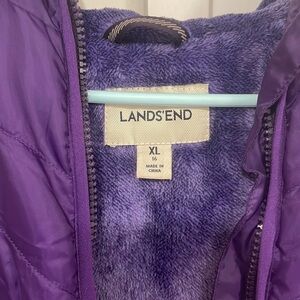 Great preowned condition: Lands’End purple hooded jacket size XL. The inside is soft and warm.