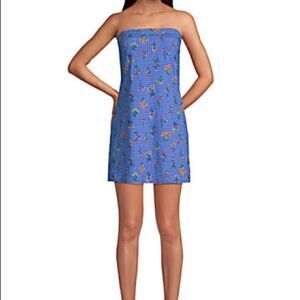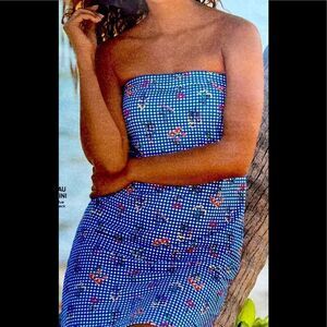 New Land’s End Bandeau Dresskini top swimsuit, top, bathing suit, top, with removable adjustable straps soft cu shelf bra size 6 in electric blue botanical check swim top.