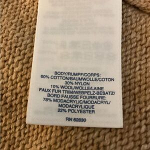 Lands End XL teen poncho Camel, wool blend , front hand opening, collar button detail, 33x23