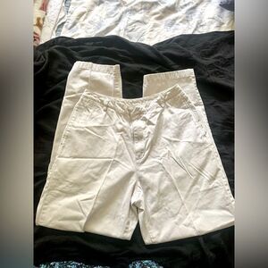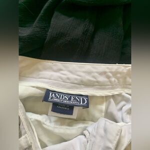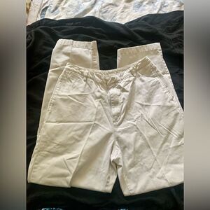 Land’s End chinos. High waisted, size 10. They are a small fitting 10. Slim fit.