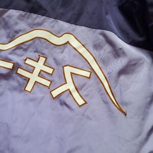 IN EXCELLENT CONDITION but behind the stickers are a little torn, you can see in the PICTURES. INSIDE FLEECE puffer,can remove and dress separately.