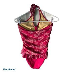 Adorable pink ruffled halter one piece swimsuit for girls. EUC from smoke free home.