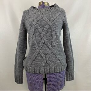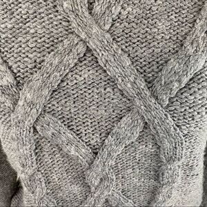Lands' End grey cable knit sweater in an acrylic wool blend. Th sweater is a size medium (10-12) and in nice used condition.