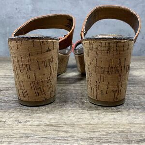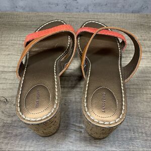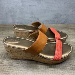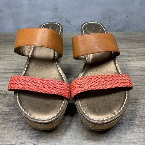 Lands End Della Mid Wedge Slide Sandals Cork Heel Braided Strap Brown/orange