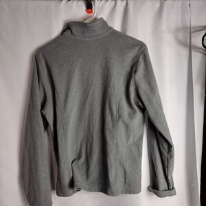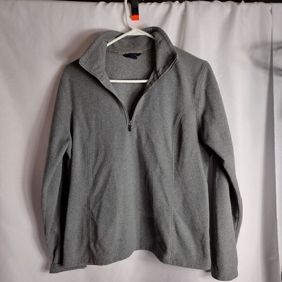 gray, 1/4 zip, fleece jacket. has some pilling throughout, see pictures. pit to pit 22" length 25"