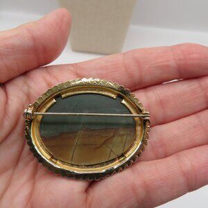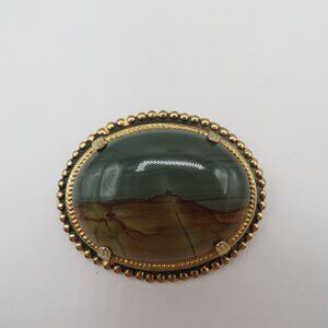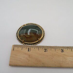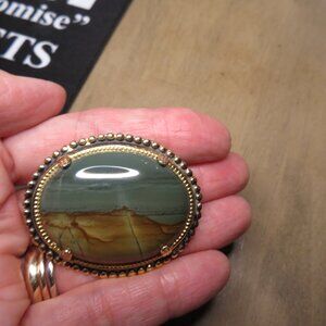 Landscape Agate Stone Gold Tone Brooch. Approximately 2 inches in size.