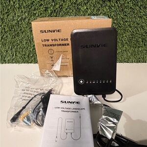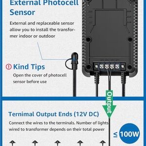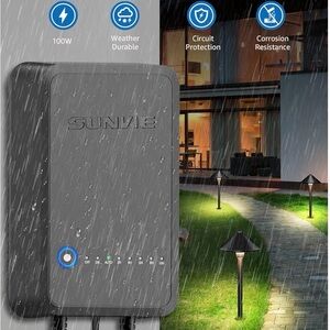 SUNVIE 100W Low Voltage Landscape Transformer Weatherproof Low Voltage Transformer with Photocell & Timer 120V AC to 12V DC Landscape Lighting Transformer for Outdoor Spotlights Path Lights Step Light