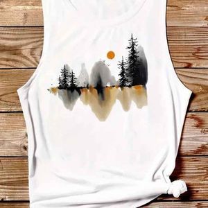 Landscape Water Color Painting Print Tank Top Crew Neck Sleeveless Top Size Med