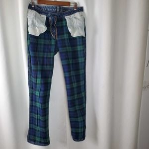 Lands'end Blue Jeans Flannel Lined Size 10, flannel blue and green squares, front and back pockets.