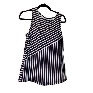 Lands’end Navy MIXED DIAGONAL STRIPE Chlorine Resistant UPF 50 Tankini Top 14L