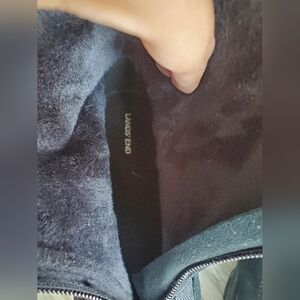 Stylish and comfortable Landsend fleece lined floral print, women's zip up boots in black and gray, in great condition. Perfect for winter.