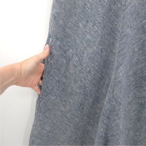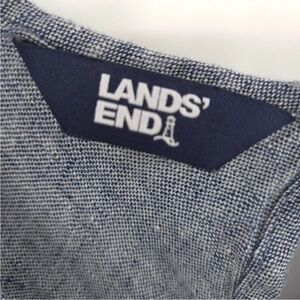 The Lands' End Sleeveless Knee Length 100% Linen A-line Dress in size M is a classic and comfortable option for a casual summer or spring look. Featuring a solid blue color, round neckline, and button closure, this dress is perfect for travel or everyday wear. Made from woven linen fabric, this knee-length dress has a relaxed A-line silhouette and convenient pockets. Easy to care for with its machine washable property, this peasant-style dress from Lands' End is a versatile and timeless addition to any woman's wardrobe.