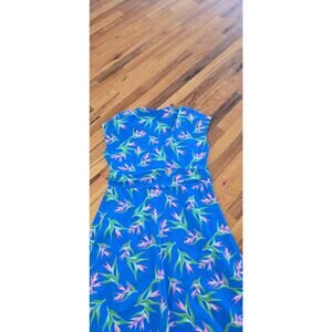 Lands's End Women's Blue Short Sleeve Maxi Dress LG Floral Comfort