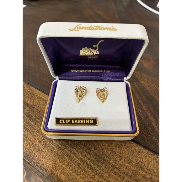 Landstrom's® Original Black Hills 10K Gold Grape Leaf Clip On Earrings NEW