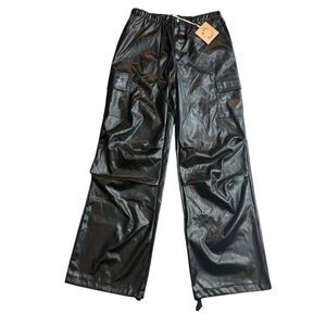 Lane 201 Women’s S Wildly Chic Cargo Pants Black Faux Leather Wide Leg Baggy New