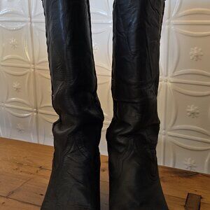 Step up your style with these stunning Lane black cowboy boots! Exquisitely crafted, they feature a striking braided detail along the side seam, adding a unique twist to the classic Western look. With a sleek 14-inch shaft and a comfortable 2-inch stacked heel, these boots bring both elegance and edge to any outfit. They're in excellent condition, only worn a handful of times, so you can enjoy high-quality craftsmanship with minimal wear. Perfect for making a statement, these boots are ready to take your style to the next level!