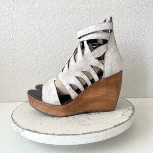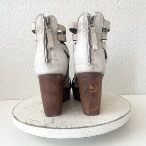 Lane Boots BECCA Wedges Womens 8 Western Cowgirl White Wooden Heeled Sandals