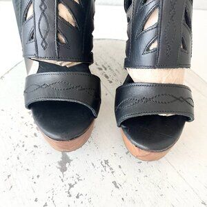 Lane Boots BECCA Womens Black Wedges 5.5 Western Sandals Cowgirl Leather Heels
