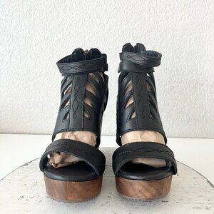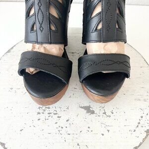 Lane Boots BECCA Womens Black Wedges 7.5 Western Sandals Cowgirl Leather Heels