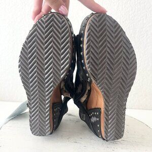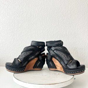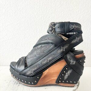 Lane Boots LEXINGTON Womens Black Wedges 6 Western Sandals Cowgirl Wooden Heel