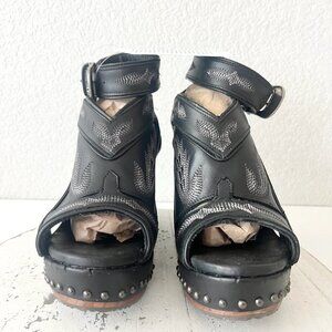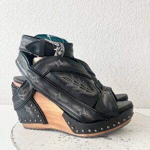 Lane Boots LEXINGTON Womens Black Wedges 8 Western Sandals Cowgirl Wooden Heel