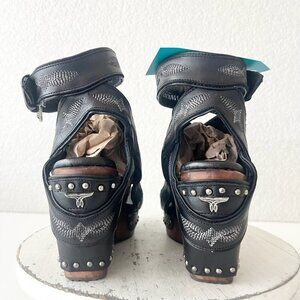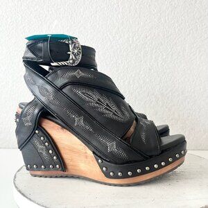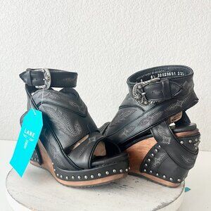 Lane Boots LEXINGTON Womens Black Wedges 8.5 Western Sandals Cowgirl Wooden Heel