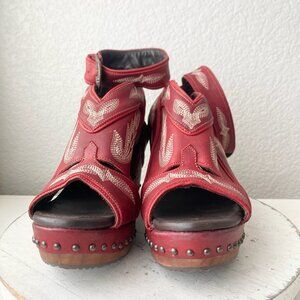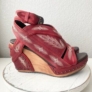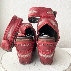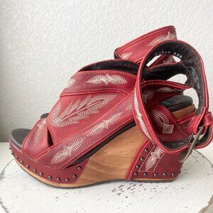 Lane Boots LEXINGTON Womens Red Wedges 10 Western Sandals Cowgirl Wooden Heels