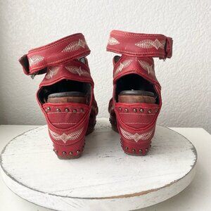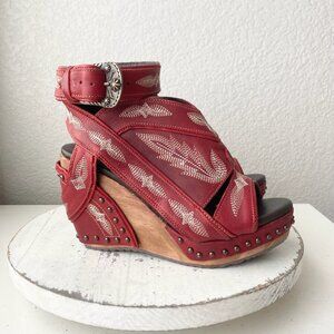 Lane Boots LEXINGTON Womens Red Wedges 6 Western Sandals Cowgirl Wooden Heels
