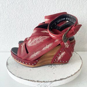 Lane Boots LEXINGTON Womens Red Wedges 8 Western Sandals Cowgirl Wooden Heels