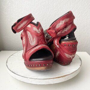 Lane Boots LEXINGTON Womens Red Wedges 9.5 Western Sandals Cowgirl Wooden Heels