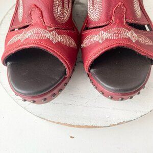 Lane Boots LEXINGTON Womens Red Wedges 9.5 Western Sandals Cowgirl Wooden Heels