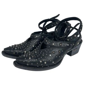 Lane Boots Sparks Fly Ankle Strap Mule Clog Womens 7.5 Black Studded Leather