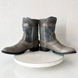 Lane Boots Women’s Gray Leather Canvas Mid-Calf Western Moto Style Zip Size 8.5